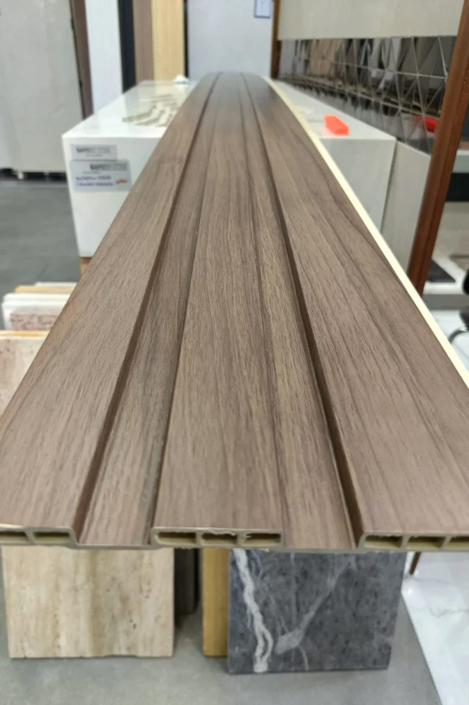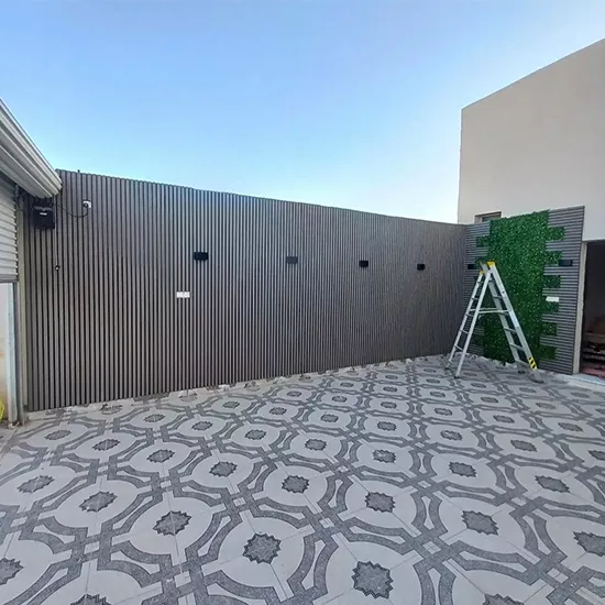 نستخدم مواد حديثة تحاكي مظهر الخشب الطبيعي لكنها أكثر تحملاً للعوامل الجوية وأقل تكلفة في الصيانة.