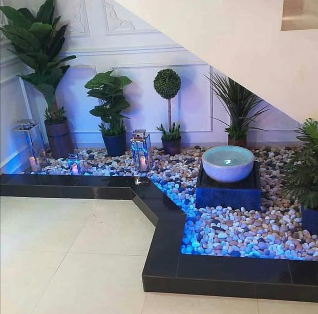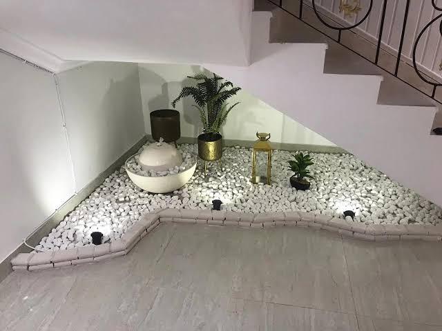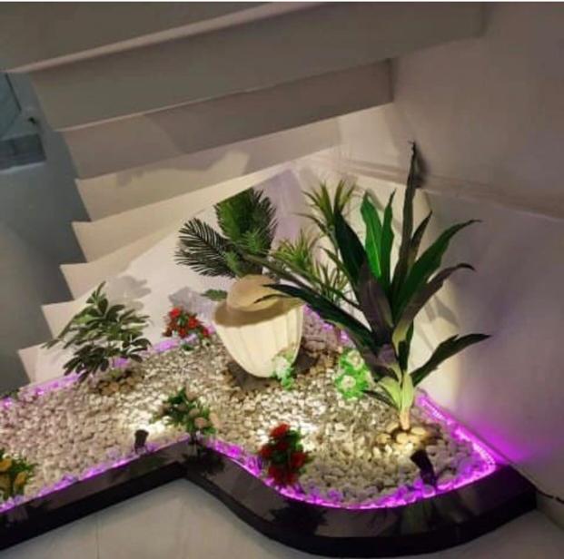 في زهرة الشرقية نحول المساحات المهملة تحت الدرج إلى ركن فني جميل يضفي لمسة فخمة على المكان.