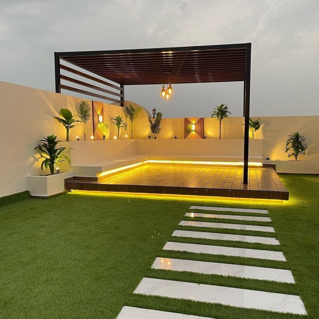 تنسيق الجلسات مع العشب الصناعي، الشلالات، والنوافير لخلق أجواء طبيعية متكاملة.